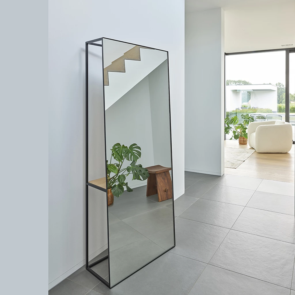 Deknudtin Chassis -peili on yhdistetty tukevaan runkoon. Yleensähän peili mielletään litteäksi ja siroksi. Chassis-malli ei noudata tätä linjaa. Mahtava esim. pukeutumispeiliksi tai eteiseen.