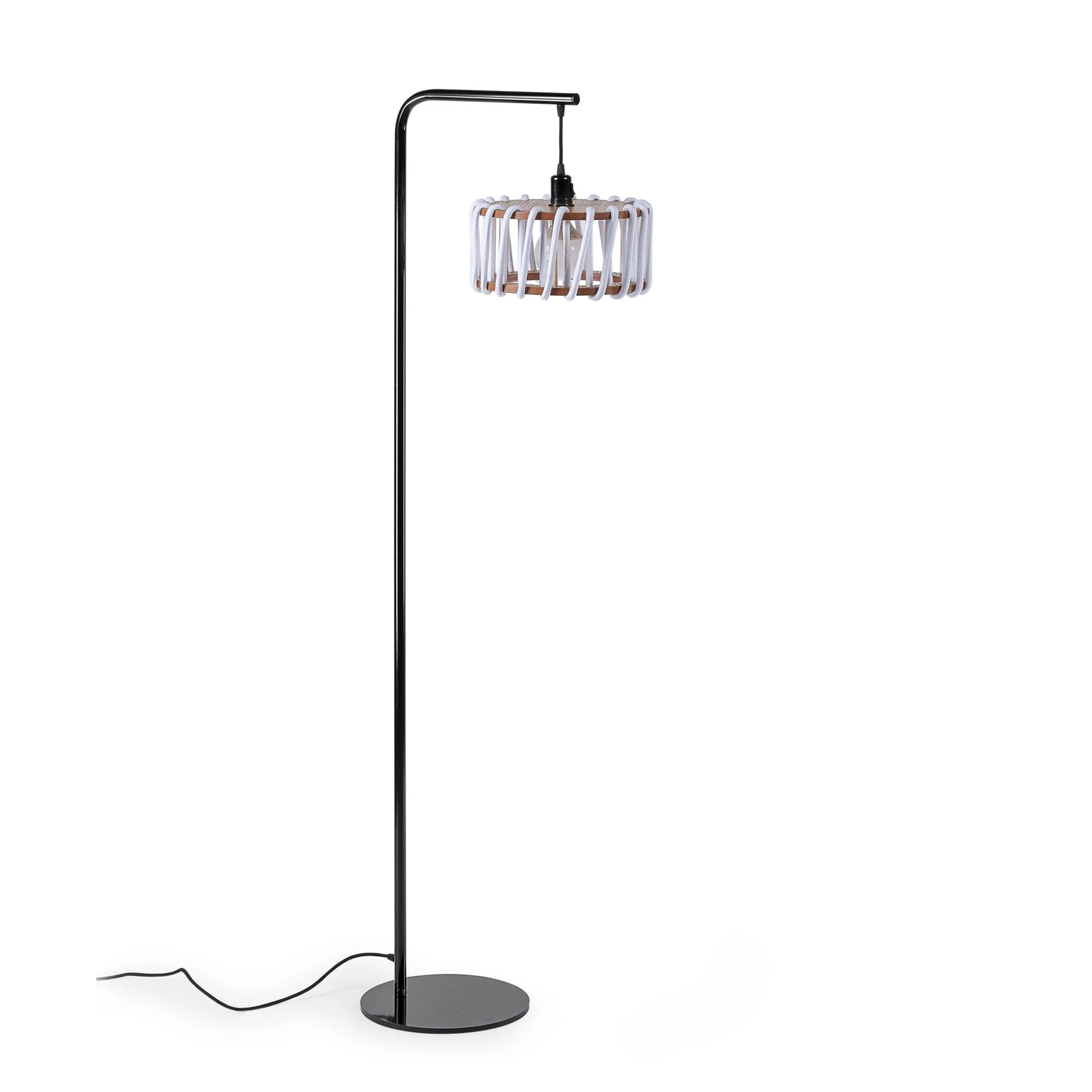 Materiaalit: maalattu metalli (musta tai valkoinen), mdf, tammivaneri, värjätty köysi