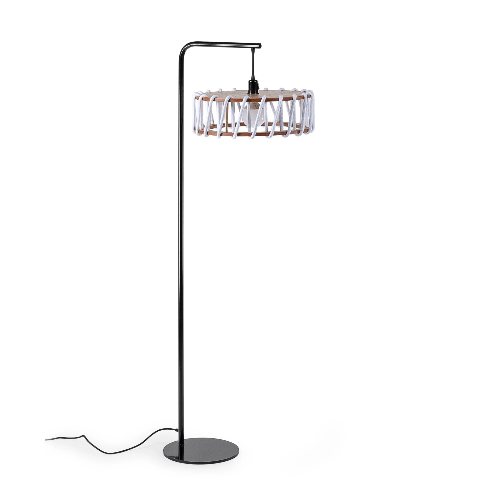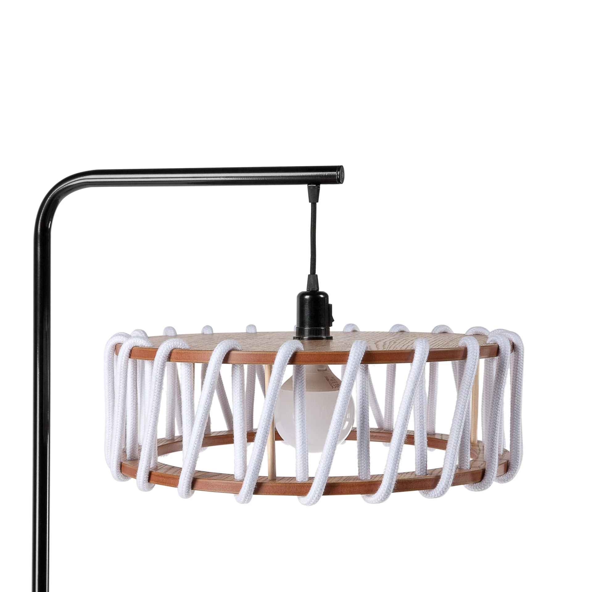 Materiaalit: maalattu metalli (musta tai valkoinen), mdf, tammivaneri, värjätty köysi
