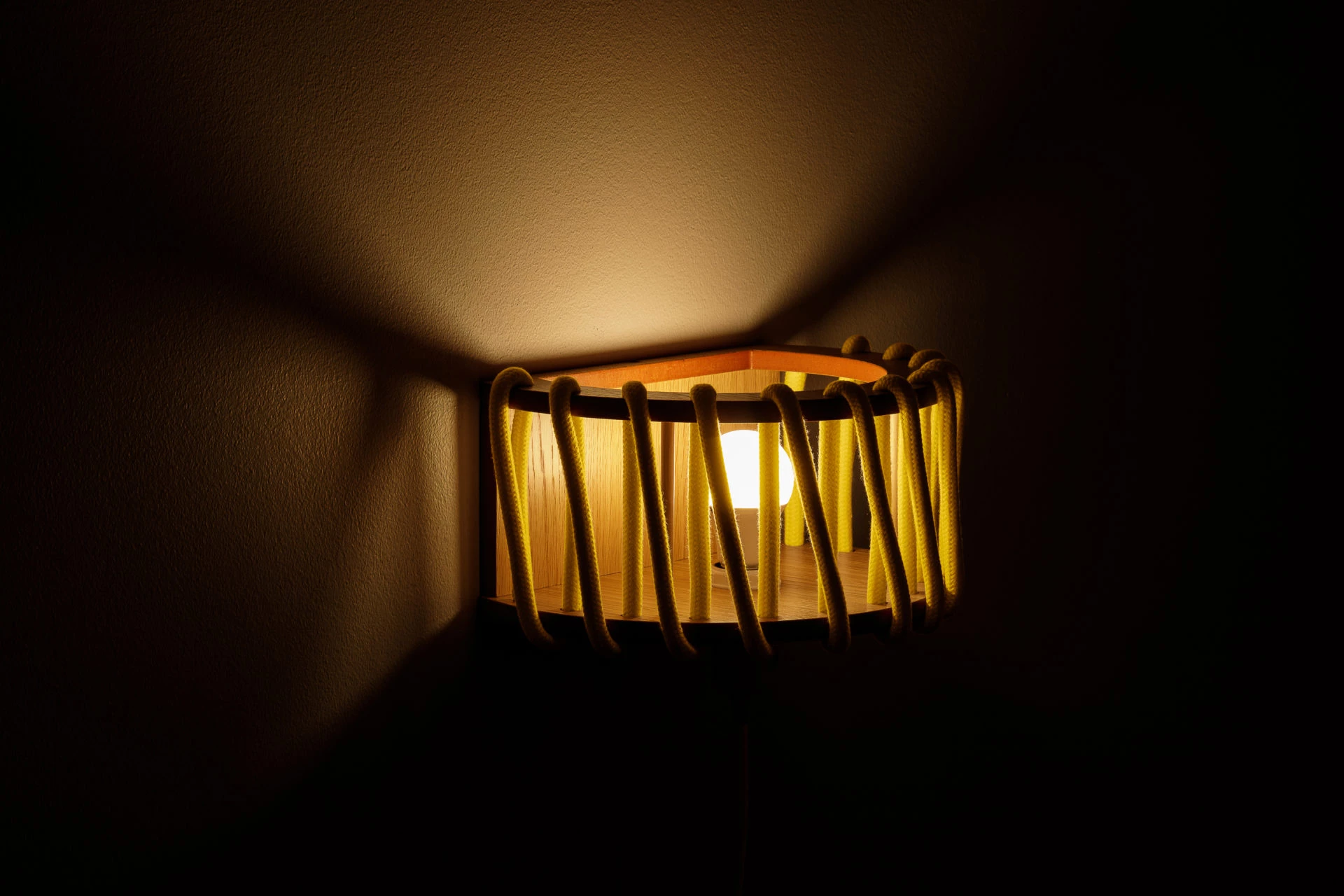 Materiaalit: runko mdf, tammivaneri, maalattu koivu, värjätty köysi