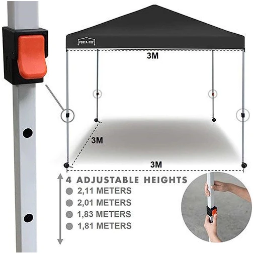 Koko: 3x3m, useita eri korkeusasetuksia