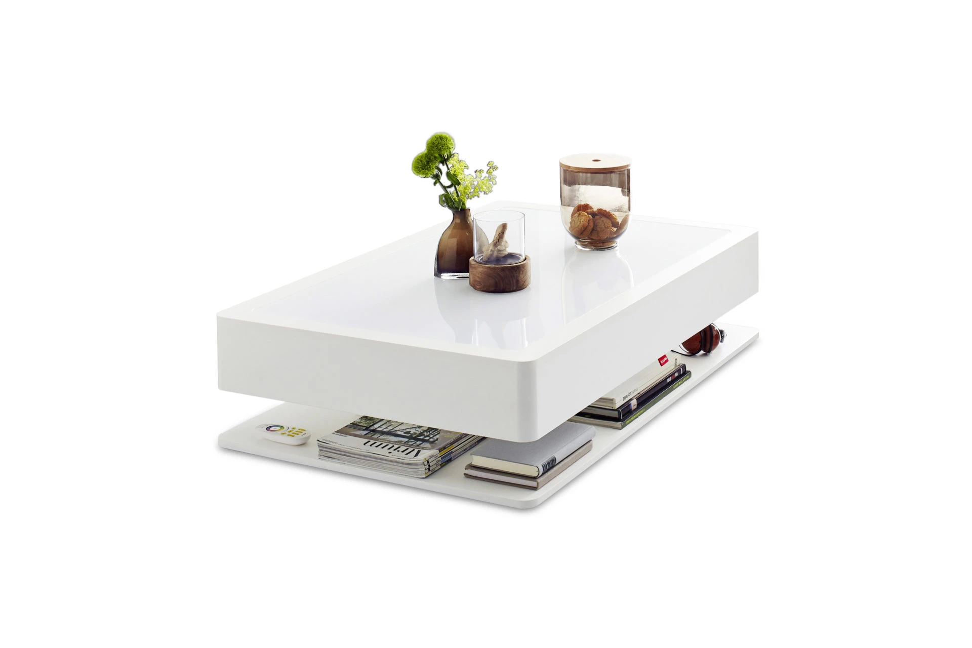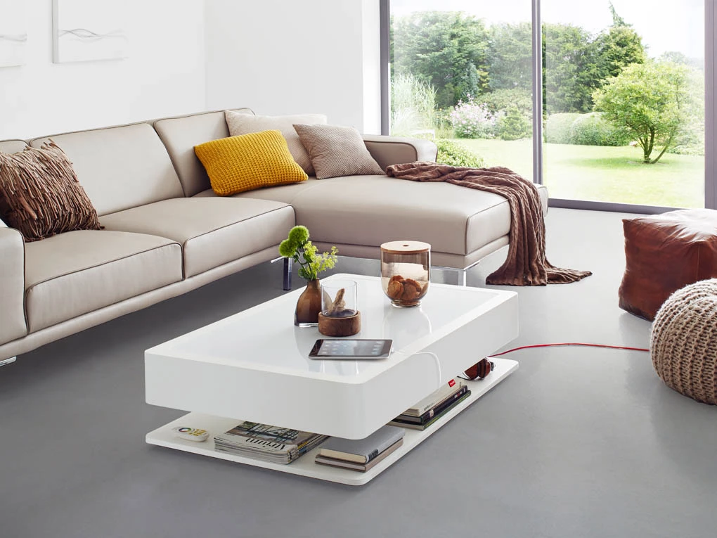 Moree Ora Home Pro -sohvapöytä led-valoilla, valkoinen