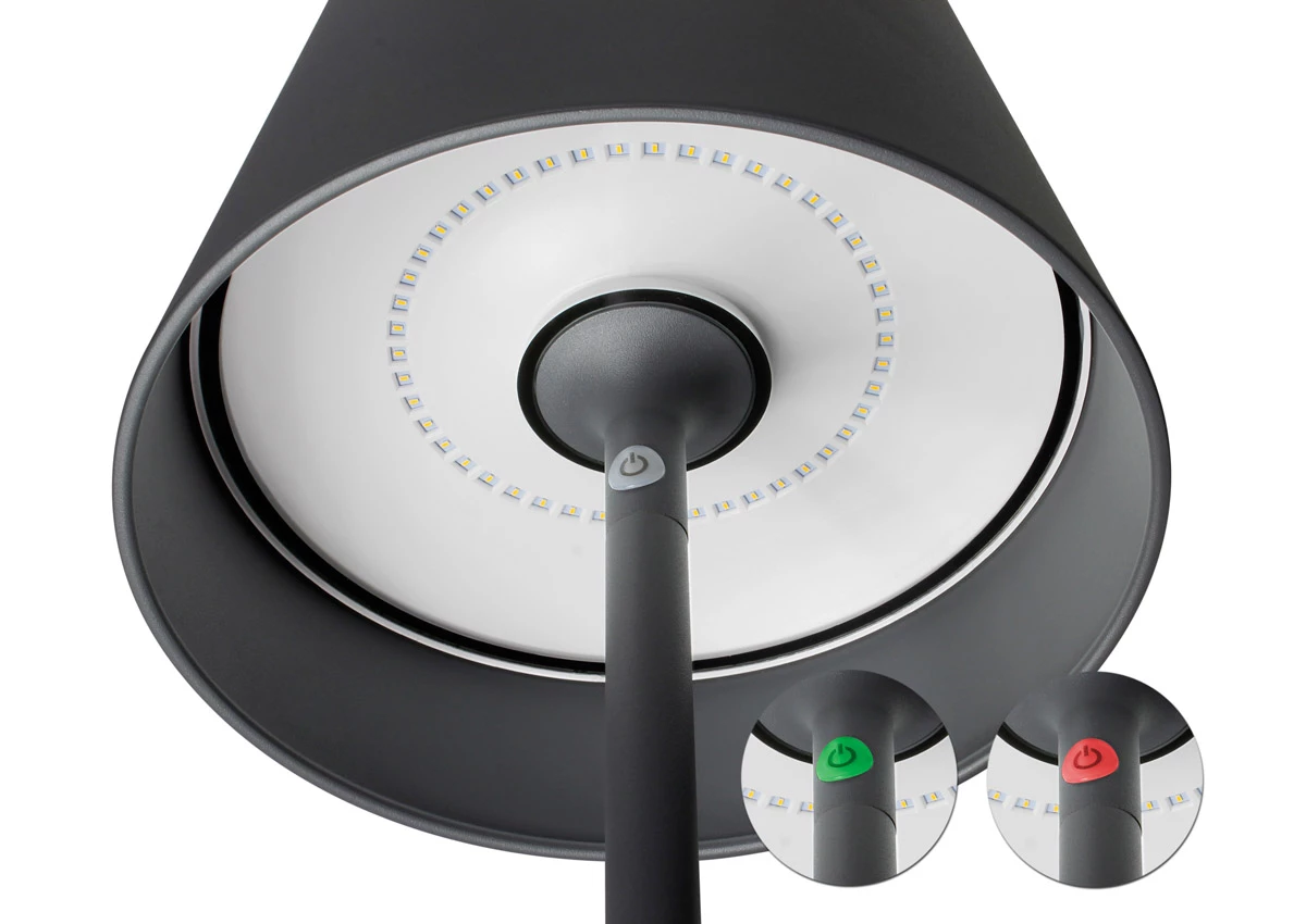 Tämä näppärä valaisin saksalaiselta Moreelta on todella monipuolinen; kolme eri korkeutta samassa valaisimessa, himmennys, käy myös ulos ja on kaiken lisäksi ladattava!