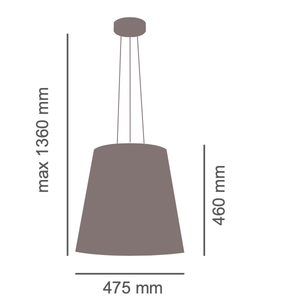 L = halk. 47,5 cm, korkeus 46 cm, max. ripustuskorkeus 136 cm