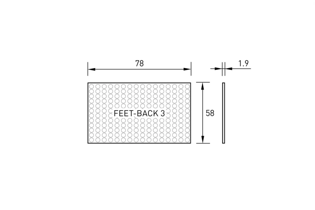Feetback 3:n mitat: 78 x 58 x 1.9 cm