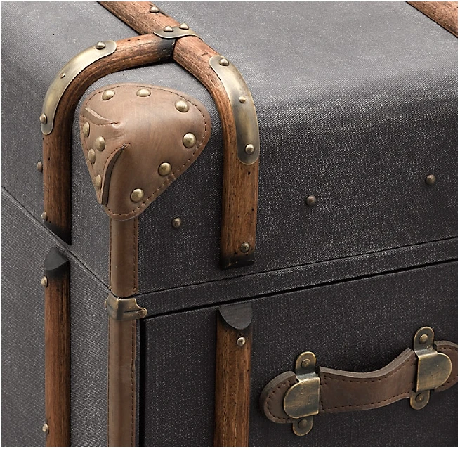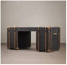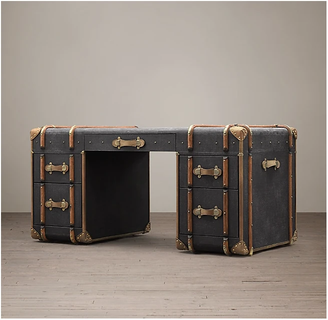 Upea matka-arkusta innoituksensa saanut kirjoituspöytä on verhoiltu kankaalla. Siinä on teräsruuveja sekä mm. puisia ja nahkaisia yksityiskohtia. Tätä pöytää löytyy useassa eri värissä, valitse omasi!