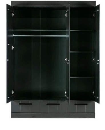 Woood Connect 3-ovinen vaatekaappi, musta
