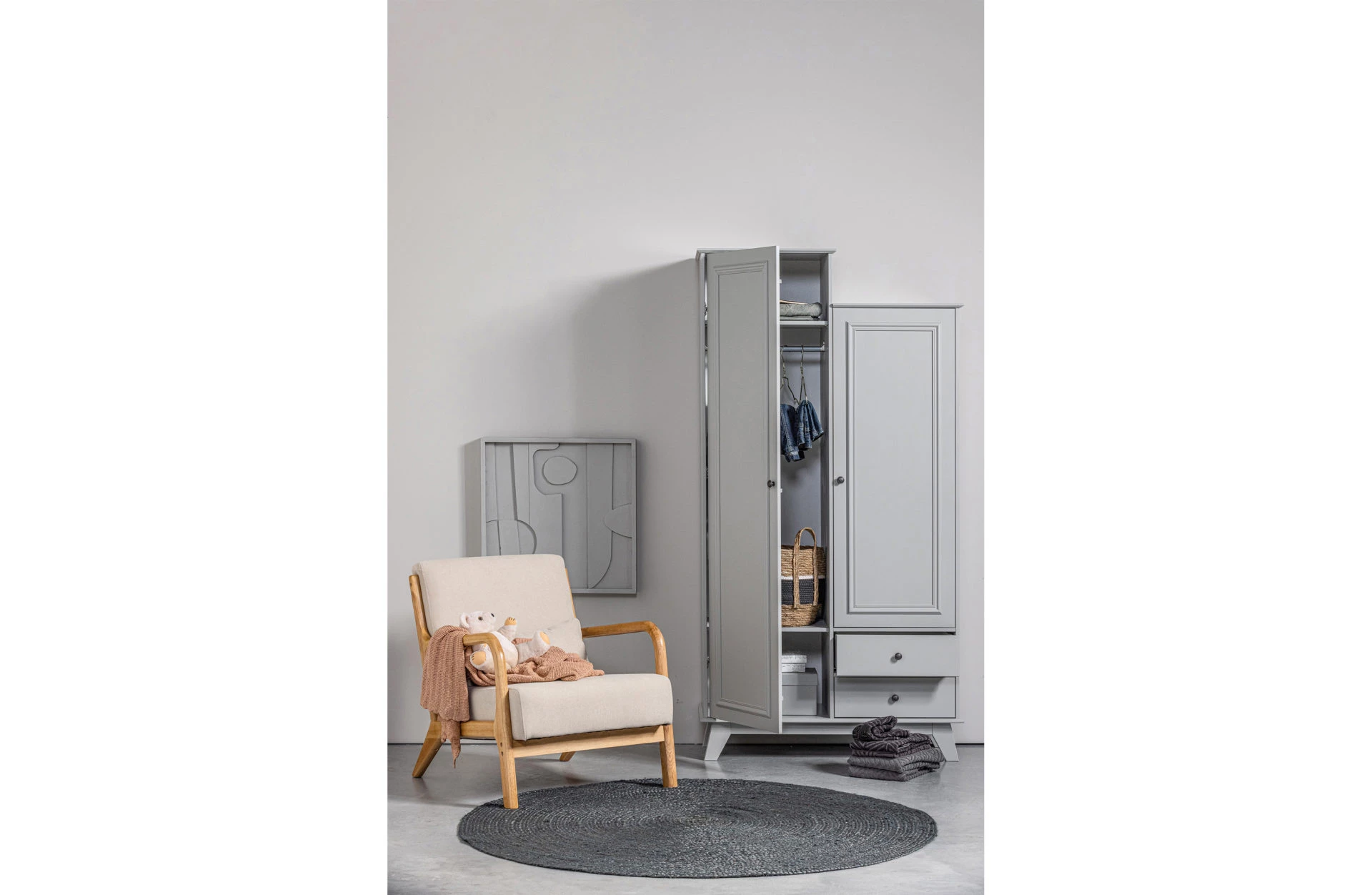 WOOODin Mark-nojatuoli on kaunis, siro nojatuoli, joka näyttää erityisen hyvältä missä tahansa sisustustyylissä. Mukavan nojatuolin käsinojat, jalat ja runko on valmistettu kumipuusta.. Tuolia on saatavana myös vihreällä ja harmaalla sametilla verhoiltuna.