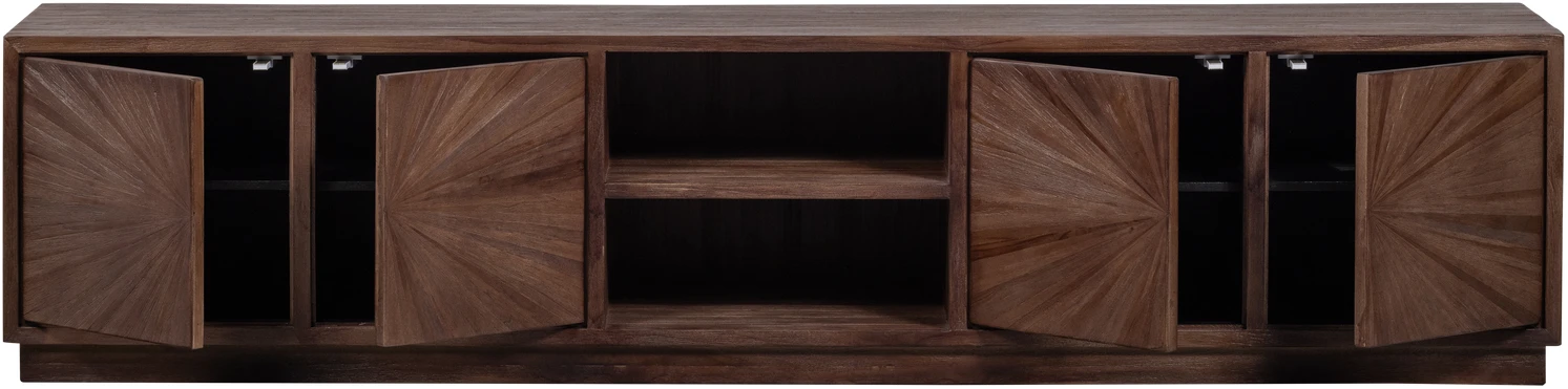 WOOOD Sun tv-taso on selkeälinjainen ja moderni säilytyskaluste, jossa yhdistyvät käytännöllisyys ja rauhallinen muotokieli. Sopii olohuoneeseen kevyeksi mutta jämäkäksi mediakalusteeksi. Mitat: leveys noin 150–180 cm, syvyys noin 40–45 cm, korkeus noin 45–55 cm.